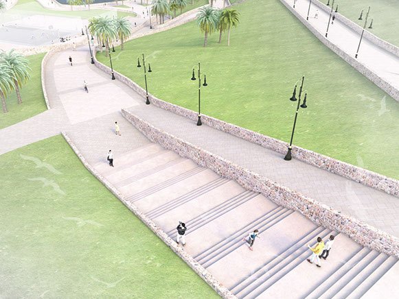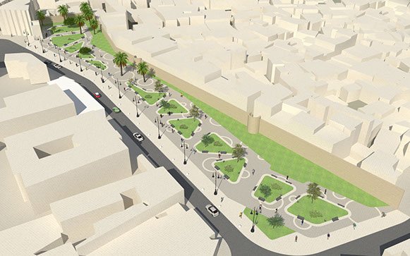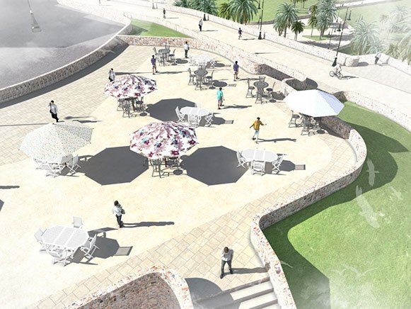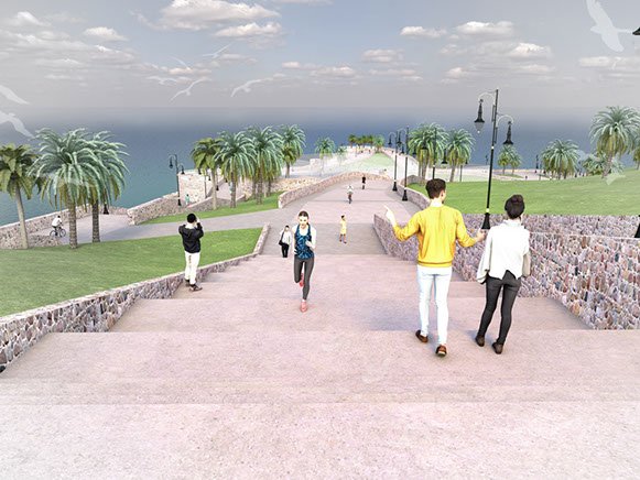 Sur un site emblématique de la ville, cette intervention audacieuse, comprenant des balades piétonnes et des espaces verts a pour but de lui ouvrir un espace d'exception aux habitants de la ville et aux touristes. Aux lignes dynamiques et harmonieuses, cet aménagement est conçue avec en premier lieu, le souci d’échelle et de confort de l’usager. Elle permettera de profiner de points de vue inedits sur la baie d'Al Hoceima.