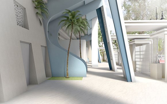 L’architecture proposée reprend les codes de l’architecture de la ville de Martil qui privilégie une architecture blanche, bleu et horizontale, associant lignes droites et jeu de volume qui se fondent dans l’environnement. Alors que l’on adapte généralement la tradition à la contemporanéité, c’est ici la contemporanéité qui s’adapte à la tradition en reprenant ses codes.